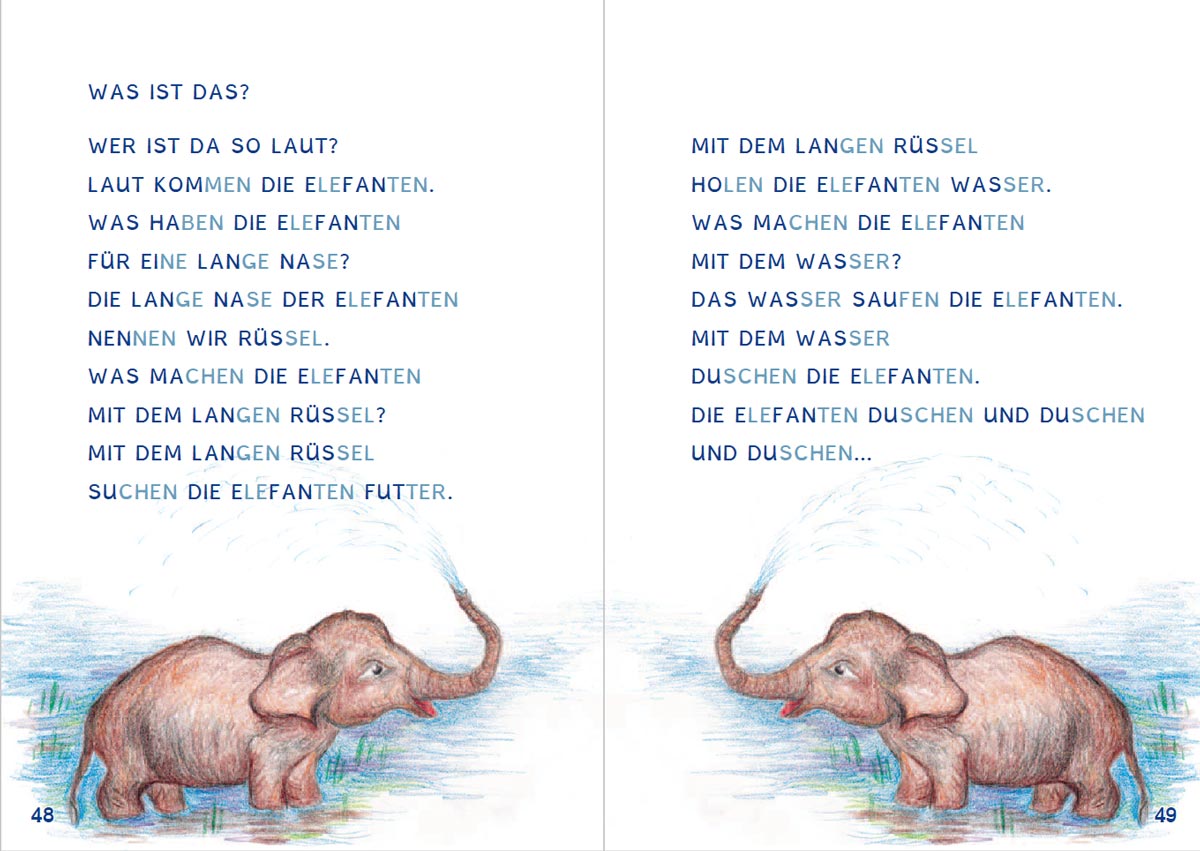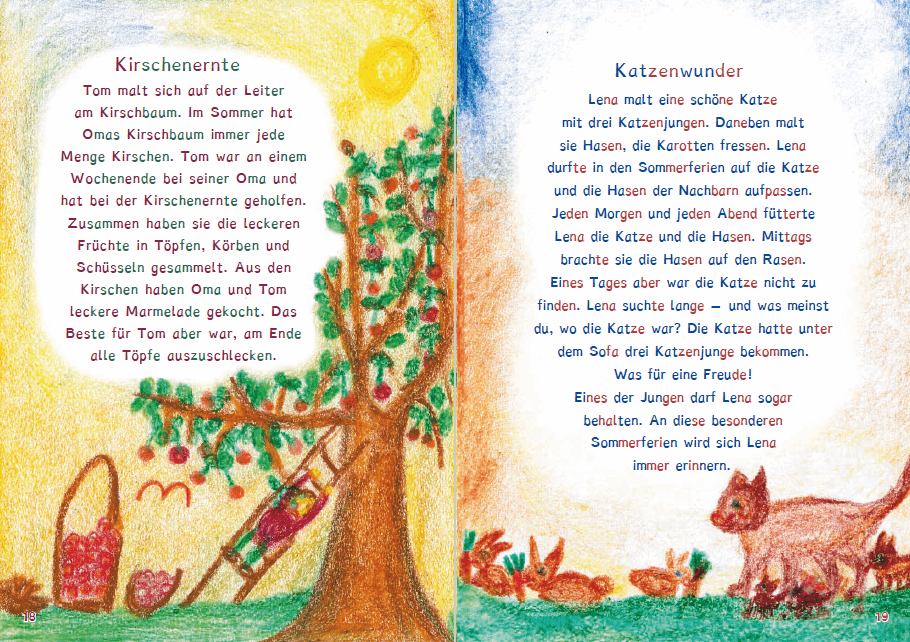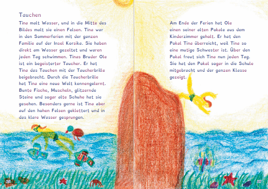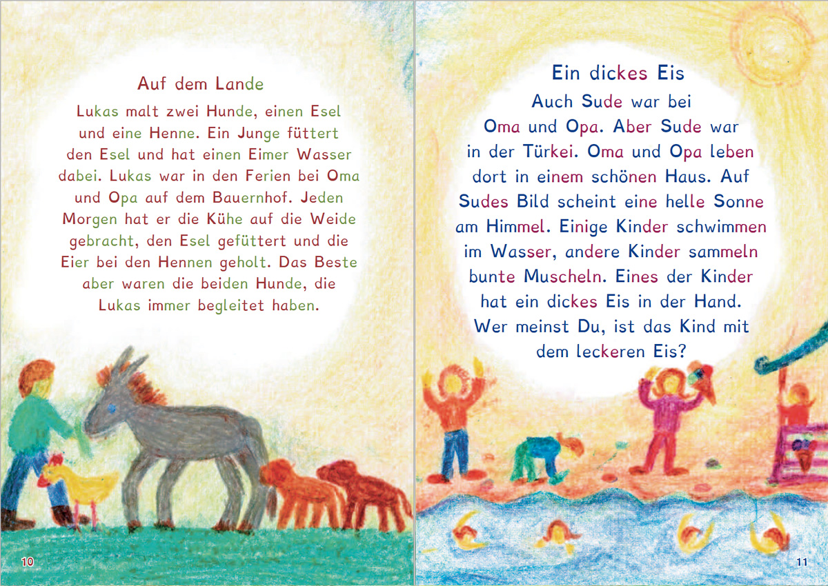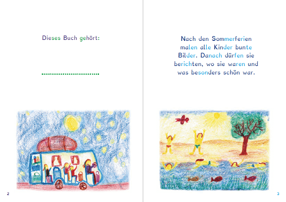 Viele spannende und lustige Feriengeschichten, die von Schülern erzählt und liebevoll illustriert sind, sollen die Kinder zum Lesen anregen. Dabei baut Lesebuch Teil 2 auf die im Lesebuch Teil 1 erworbene Lesestrategie auf. Beherrscht das Kind nun die Methode des Lesens, so soll als nächster Schritt der Text als Ganzes in seiner Sinnhaftigkeit erfasst werden. Das Ende des Buches bilden mehrseitige Erzählungen, in denen es komplexe Zusammenhänge zu verstehen gilt.